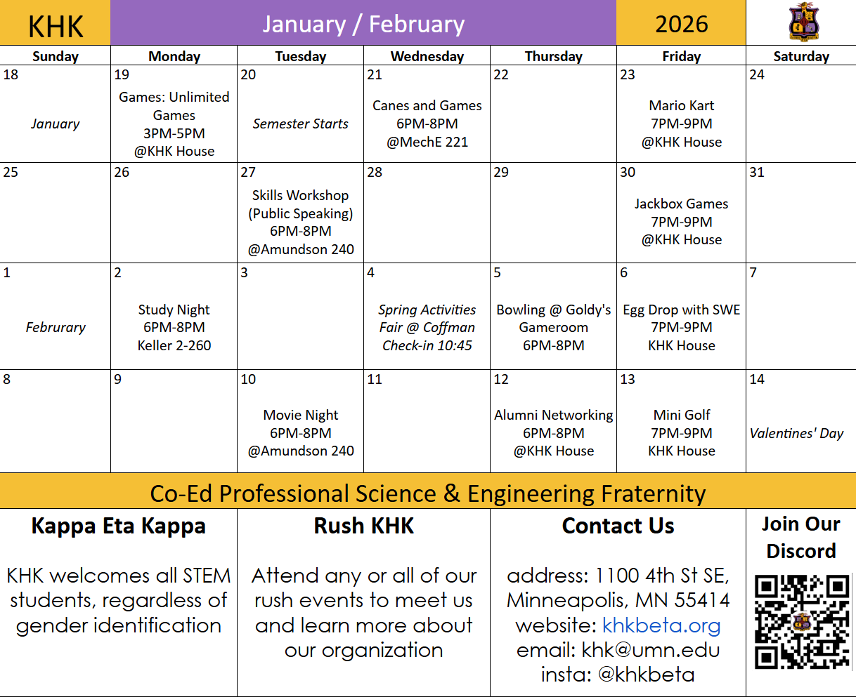 If you have any questions or are interested in joining, we'd love to hear from you. Send us an email at khk@umn.edu or join our mailing list to hear about our rush events.